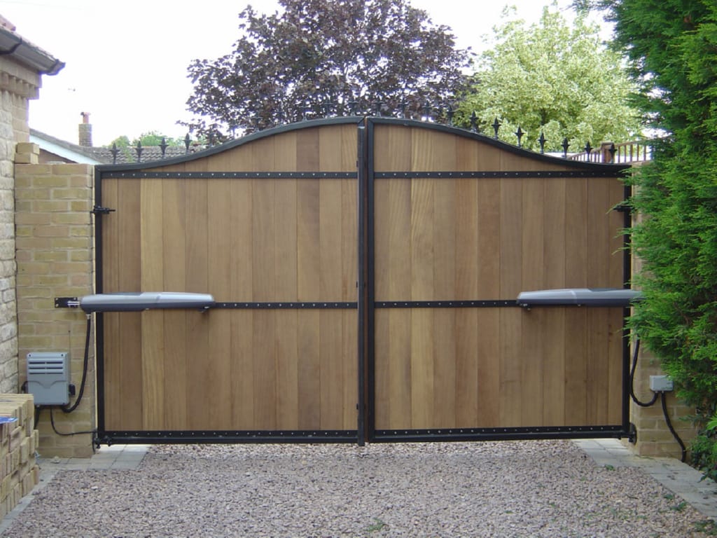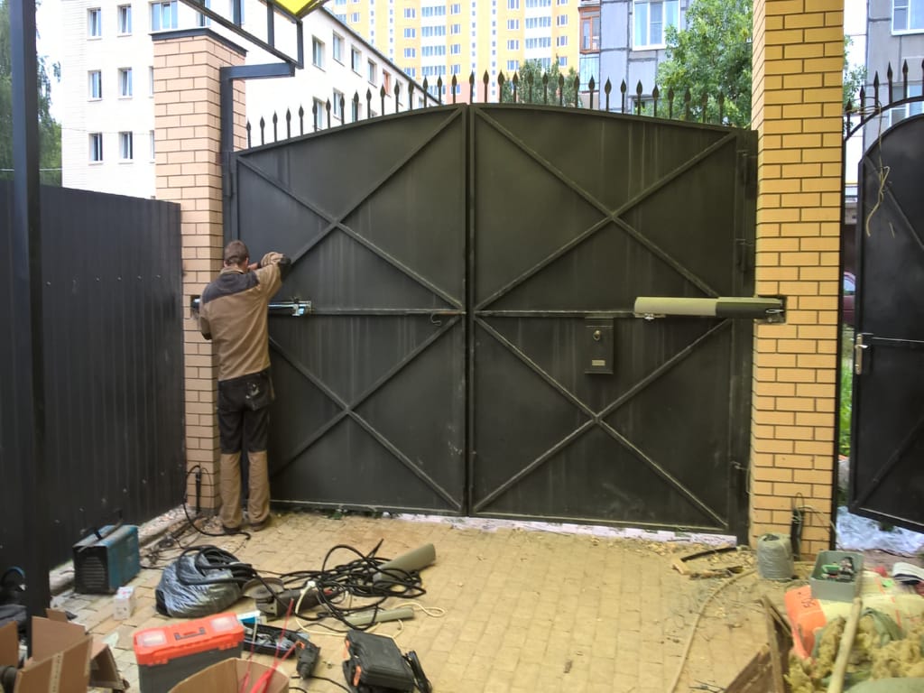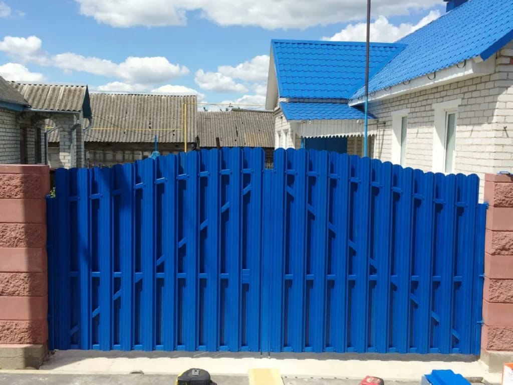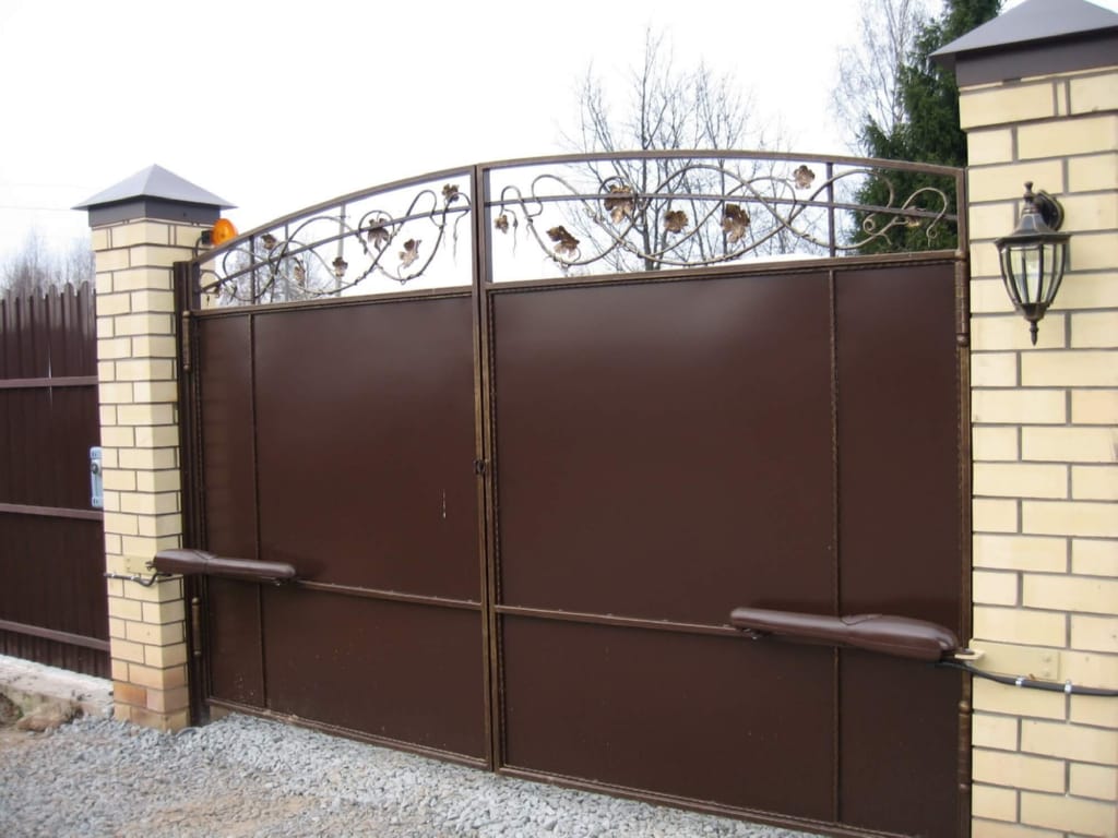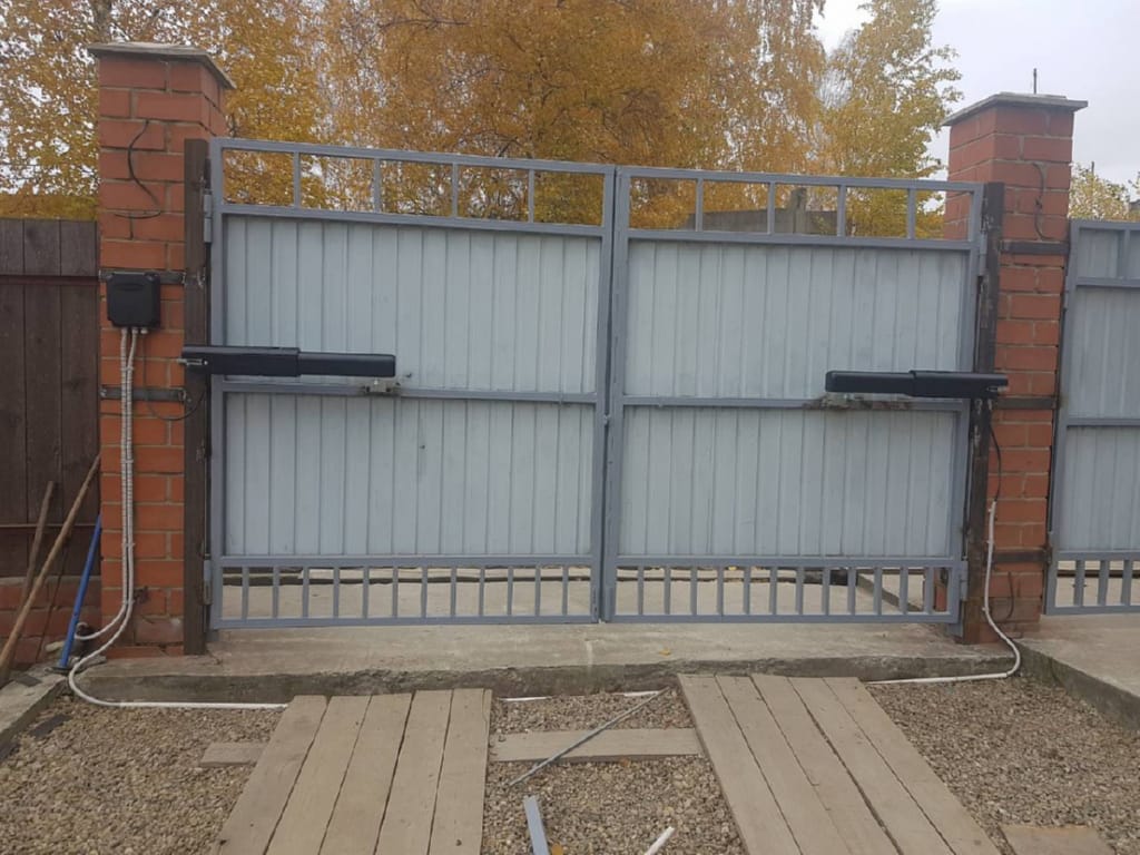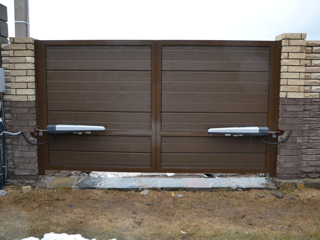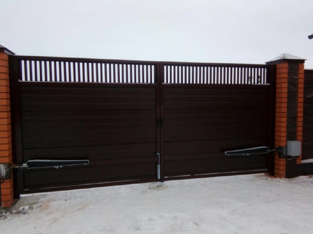 Ворота распашные с дистанционным управлением из профнастила с калиткой